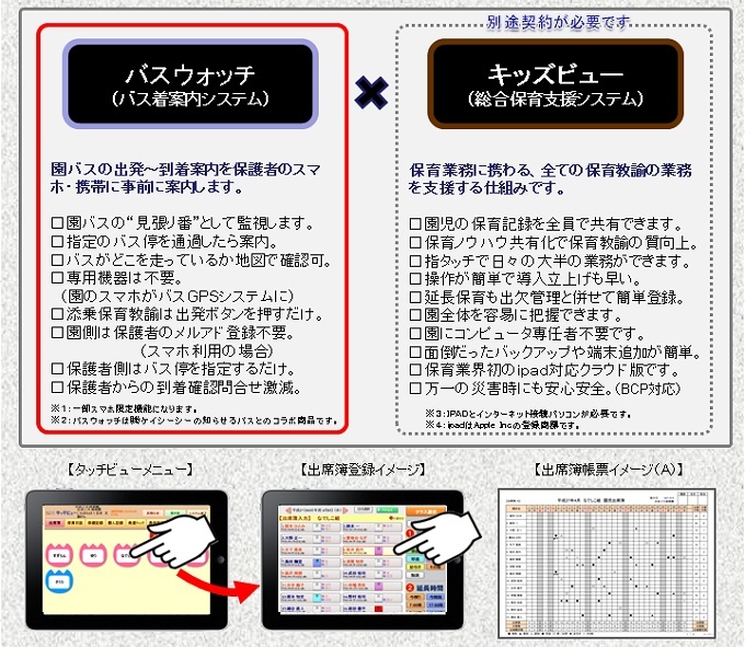 - 「バスウォッチ」の導入園では、随分先生方の負担が軽減され、ご評価していただいています。